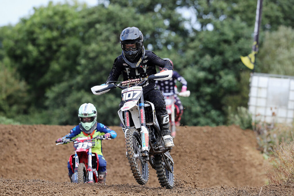 There was no doubting the Youth 85cc winner at Brookthorpe as the superb Ollie Bubb strolled to five big moto victories. However Bubb has ACU Championship duties as well in 2022 and having already missed one round, he has announced that he will also not be at the AMCA Finale in two weeks’ time. So that means the title will go to either Jack Evans, Sebby Moore or Will Turner who along with Oakley Kettle and Wyatt McGregor produced some great racing at Brookthorpe. Moore (2), Kettle, McGregor and Turner took the opportunity to chase the flying Bubb home in the process also indulging in their own all-action motocross battle.So the podium was Bubb, McGregor, Moore, Turner and Evans but in the title race, Evans is the pacesetter on 956 points from Moore 945 and Turner 922 Over in the SW85cc class, Oliver Bebb scored another overall win to move 26 points clear of Harley Piper at the top. This title is certainly going to one of these two tiny pilots.