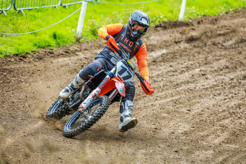 The Paradise MX Holidays MX1 class was thrown right up in the air as all the contenders were struck with some kind of bad luck. It was the wildcarding Ultimate Wheels Honda duo of James Dodd and Mark Young who put themselves in the top two spots overall with Dodd claiming a maximum five wins and Young posting five consistent top five results. Another wildcard from the AMCA British MX1 championship in Jayden Ashwell finished the weekend third overall while Jack Beniston was the only championship contender to have a solid weekend taking consistent top six results and fourth overall as points leader James Hutchinson went out of race five with a broken chain, while Andy Wilson and Scott Hamilton both went out with unfortunate injuries, we all wish them well in their recovery.