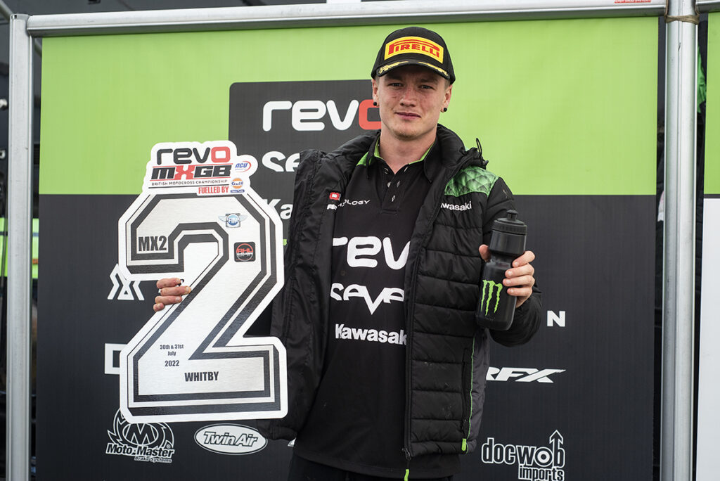 After a tough few weeks, Team Revo Seven Kawasaki and Dylan Walsh were able to celebrate their first moto win of the season at Skelder Bank, Whitby, during round 7 of the Revo British Motocross Championships on Sunday, 31st July.