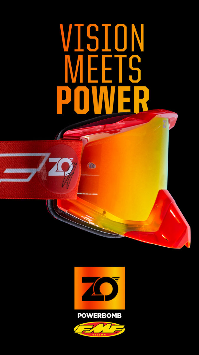 “I have ridden for basically every major goggle company and what FMF VISION has helped with from a performance level and really getting behind me has been remarkable. I am really excited to offer the first ZO16 Signature FMF PowerBomb Goggle,” offered 2020 Lucas Oil Pro Motocross Champion Zach Osborne.