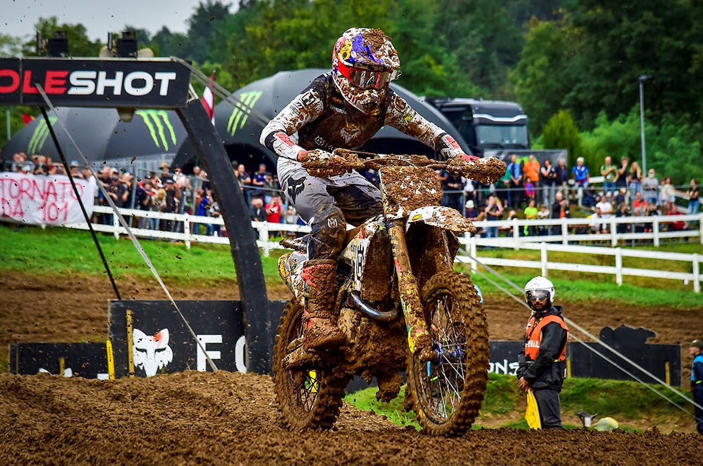 Nestaan Husqvarna Factory Racing’s Lucas Coenen stayed consistent and out of danger to finish an excellent 3rd place in front of Andrea Adamo. The Red Plate holder did the job on home soil to increase his lead on his closest rival and teammate Everts who was out of the points. It was a similar race for F&H Kawasaki Racing Team’s Kevin Horgmo who got a good start and maintained his position well given the conditions to finish 5th after capitalising on McLellan’s crash.