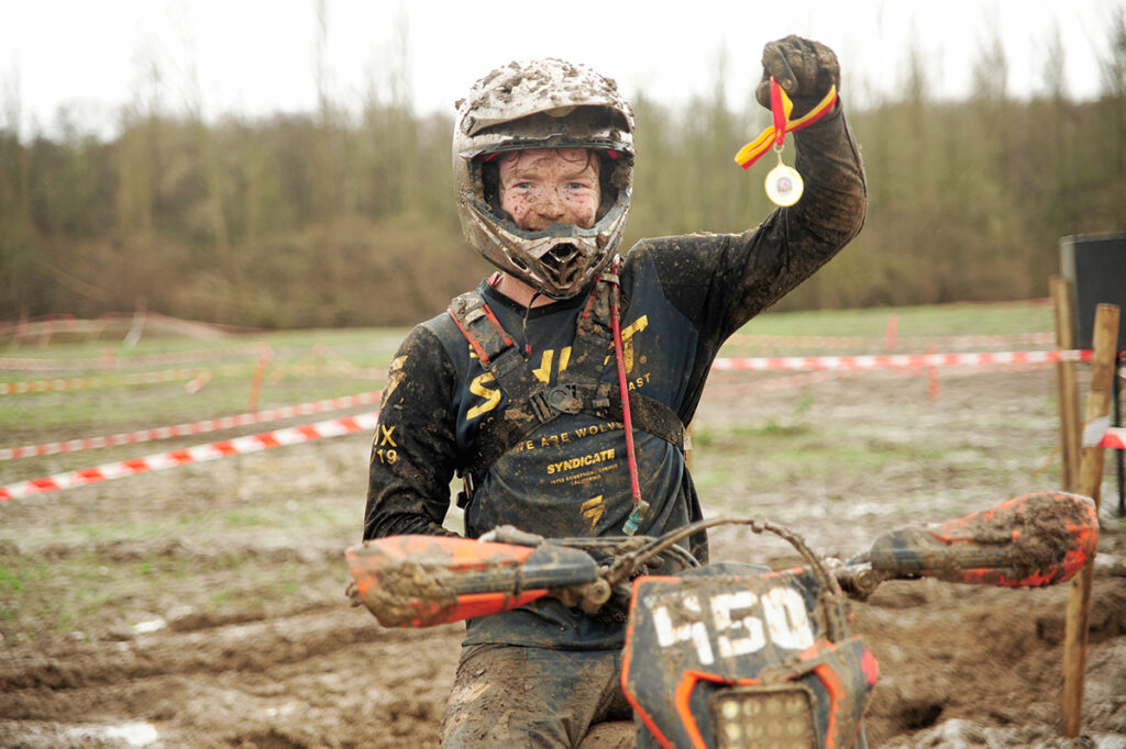 With four classes Pro, Expert, Clubman & Trials. The staggered Le Mans Start meant that the Pro riders got a flying start after a short sprint to their cold bikes with North Somerset MCC winner of the last 6 events Charlie Frost taking the lead over Ben Wibberley from Sidcup Club before the first bank and continued to battle it out for the 2 hour race over some 25 obstacles and individual efforts in deep mud with added rain to help Frost finish on a final lap score of 15 over Webbelys 13 with Ipswichs Jack Sheppard finishing on a hard-fought and respectful 11 laps.