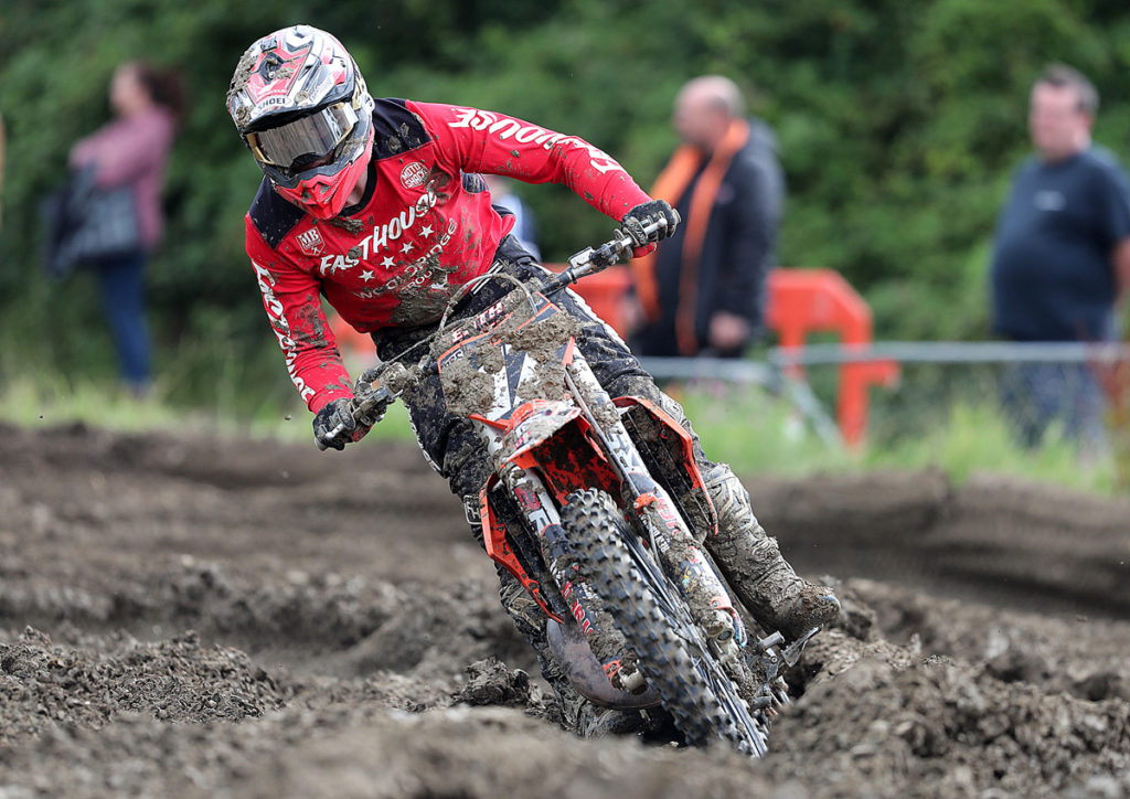 Although the same rider’s featured on the MX1 podiums for both Saturday and Sunday, this class served up several stunning encounters. The fun all began in the opening clash of the weekend as Dodd(twice) and Greedy took turns to lead the way only for Waterman to come storming through and snatch a dramatic victory on the final lap. With conditions at this point still totally dry, Hawkins, Luke Burton, Adam Chatfield, Luke Meredith, Jamie Skuse, Luke Dean and Damon Strydom started the event with strong top-ten finishes. With just two blocks planned for day one, Hawkins then passed Waterman on the opening circuit of Saturday’s second moto before racing onto the win. That meant that it was Waterman taking the overall verdict from Hawkins and Greedy.