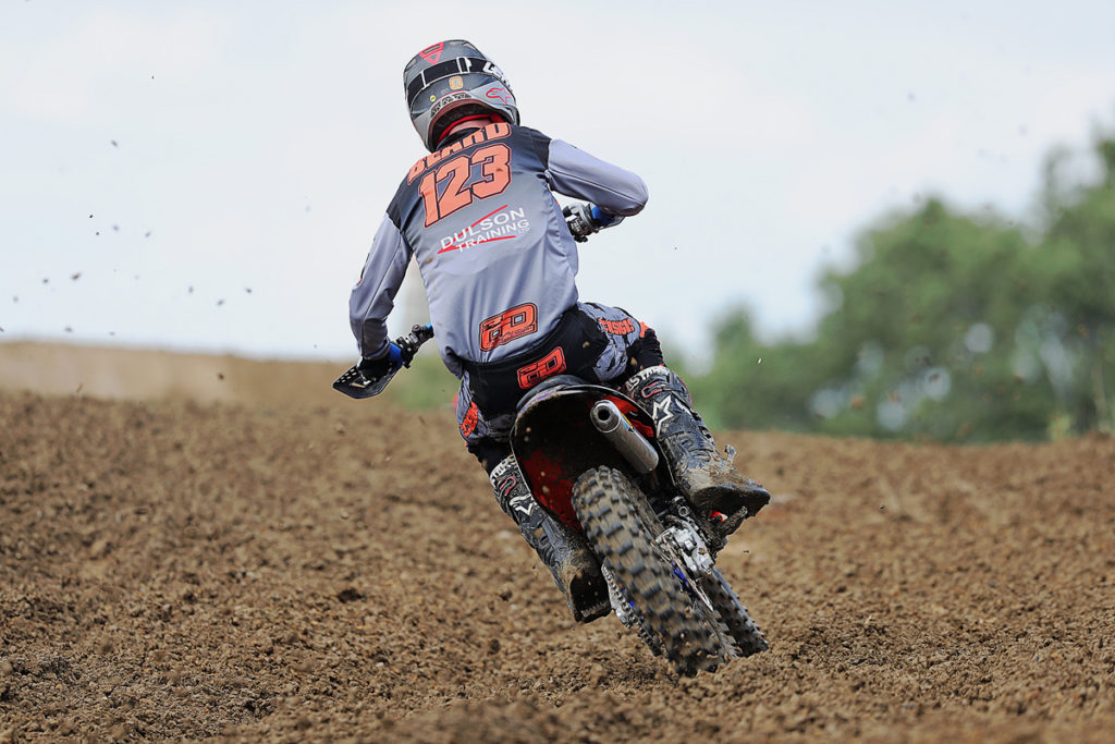 Just two weeks before Brookthorpe, Youth 85cc series leader Oliver Rigby suffered a broken collarbone and his 44 point Championship advantage appeared to be in serious threat of being overturned. Bravely though Oliver refused to be defeated and after intensive treatment made the big decision to still compete at the weekend and what a very productive move that was to be. After earning 6th overall on day one, he then bagged a remarkable podium spot and 3rd on day two. That meant that he is still the series leader despite the very best efforts of rival Charlie Hucklebridge and a whole host of other riders.