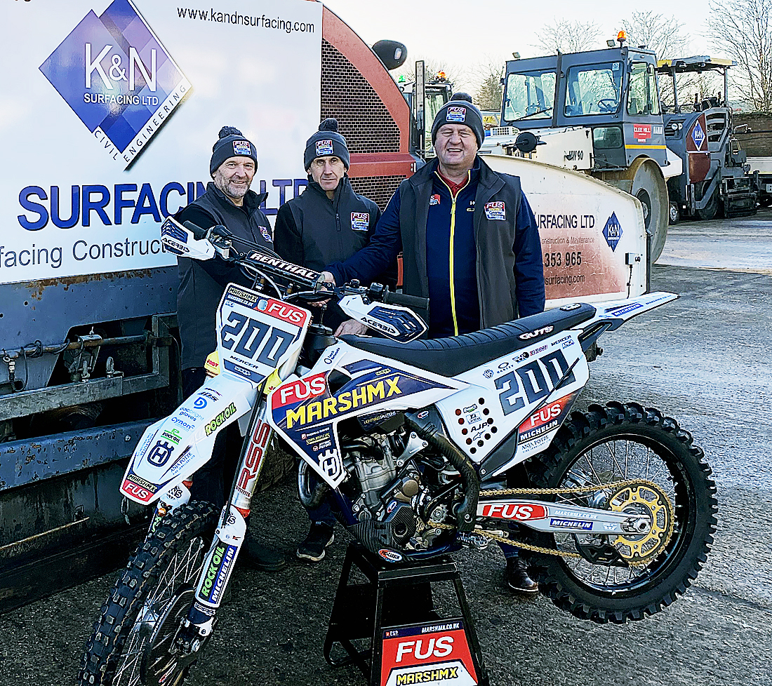 After putting another three titles during 2021 into the ever expanding honours bag, the FUS Marsh MX Geartec Husqvarna team are now delighted to announce that a major new sponsor has joined them for the season ahead. In 2022, K&N Surfacing Ltd owned by Mark Kirby will be on-board and interestingly this company are also the current employer of FUS star and 2021 AMCA Veterans Champion Phil Mercer.