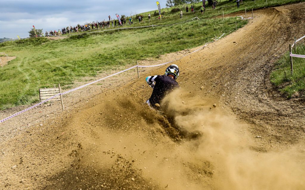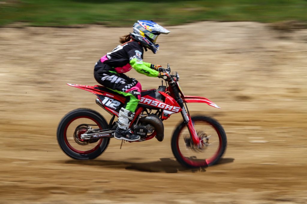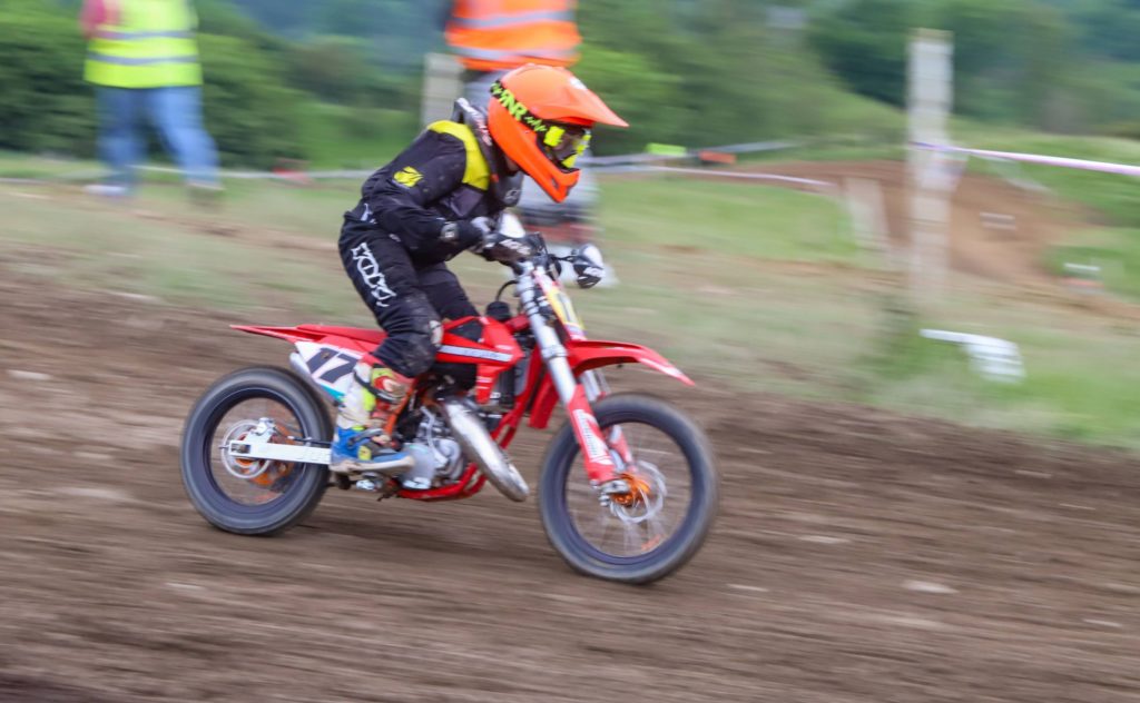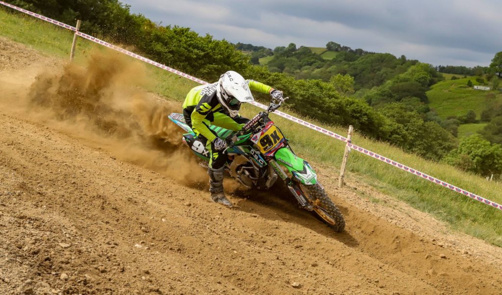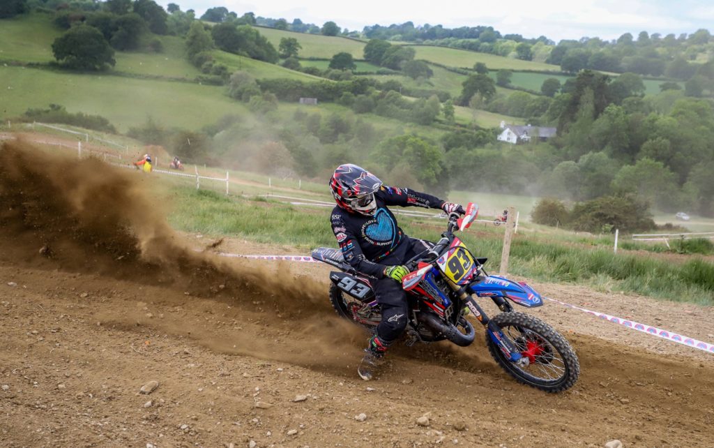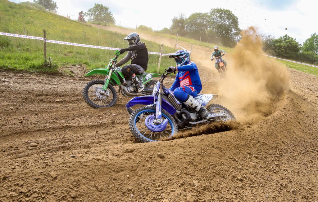 Adult A provided the fastest racing of the weekend with a surprise return to racing by Glen Phillips who gated and set off at a blistering pace to put a safe distance on the chasing pack. Nathan Frayne was heading the charge to catch the ex British championship regular and as the laps wound down the gap tightened and with the anticipation of Phillips fitness in doubt, it looked like Frayne would find his way to the front. It wasn’t to be the case though, Phillips responded and maintained position until the final lap when he buried himself too deep into a big dust berm going down allowing Frayne to take the win and Jake Curtis-Stevens to slip through eventually picking up a disappointing 3rd. Reagan Skinner held a lonely 4th ahead of an all enduro battle for 5th between 250 Kawasaki mounted Lee Sealey and 350 Husky mounted Carl Jones who had qualified fastest, Sealey taking the place.