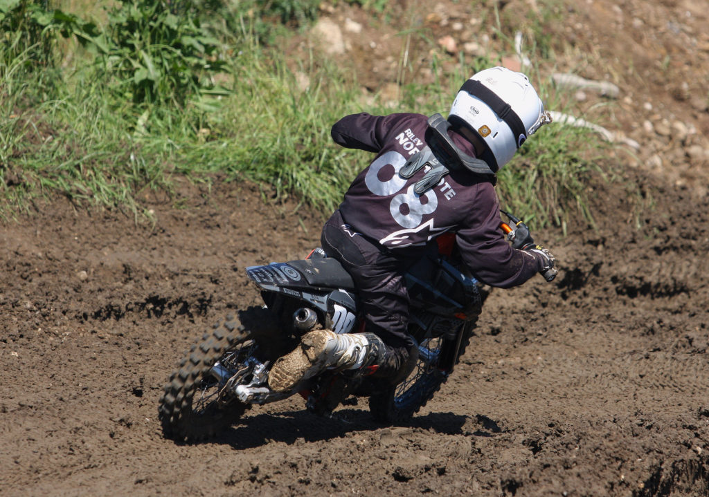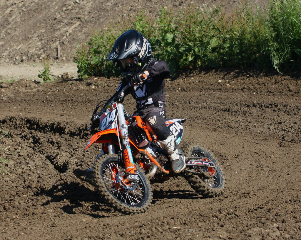 George Clark nailed two victories and a second in the Small Wheel 85’s to top the poidum over moto three winner Logan Gardner and over in the Big Wheels Joey Benifield and Charlie Hucklebridge put on a great show scrapping it out for overall glory with Benifield taking the honours with two wins to Hucklebridges one.