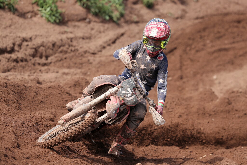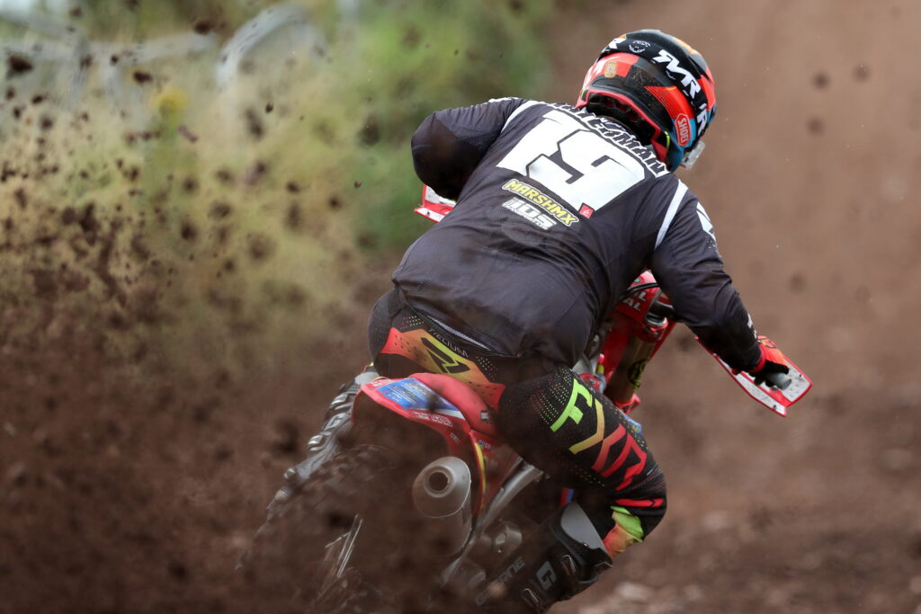 Despite initially leading the second MX2 contest before dropping to 2nd, Williams did not enjoy the best of conclusions to this one, being impeded and brought off by a wandering backmarker. Thankfully, Henry was able to quickly remount and finish 3rd behind winner Carless who had took control early on and Alba. Having a great ride, Preston went from 10th up to 4th but day one was then to not finish well for the FUS 2T Husqvarna ace. Leading moto three, Preston’s engine blew thus allowing first Williams then the flying Carless to take control. Also not enjoying a satisfactory conclusion to day one was Hockey who disappeared from proceedings on lap four thus ruining any hopes of a podium placing at the end of the weekend. So MX2 on the opening day finished with another win for Carless ahead of Williams, Alba, Jones, Zac Stealey, Brooklyn Evans and Logan Wilcox.