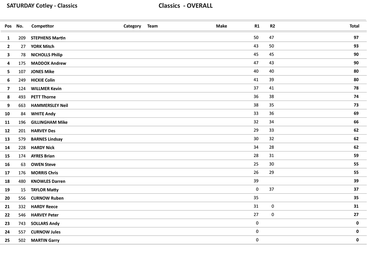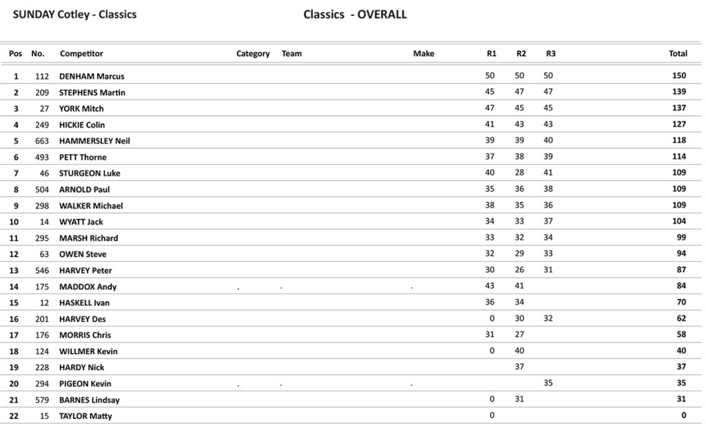 In the Classic class on the Saturday, it was Martin Stephens on his 250 Honda who took the win in the opening race with Mitch Yorke winning the second moto on his Cz 380 just ahead of Stephens which gave Stephens the overall ahead of Yorke with Philip Nicholls also on a Cz 380 taking third overall after taking third in both races. Sunday saw Luke Sturgeon having a go on a replica of Brian Goss’s 1966 250 Husqvarna which had kindly been loaned by one of Brian’s close friends for Luke to ride and he did it proud and took 7th overall at the end of the day. Also taking part on the Sunday after not riding the day before was Marcus Denham who dominated all three races on his 380 Cz with Stephens as with Saturday’s racing involved in a battle with Yorke, with them tied on points going into the last race, but it was Stephens who took second in the last race just a head of Yorke which gave Stephens second overall and Yorke took third overall.