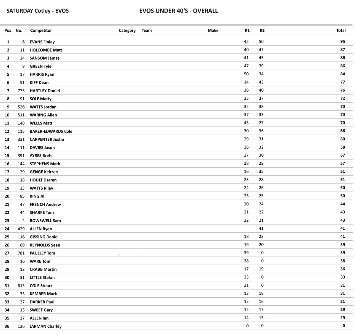 In the Under 40’s Evo Championship class on Saturday it was Ryan Harris on his RM 250 Suzuki who took the win in the opening race, but he could only manage a 12th place finish in the second moto which was won by Finley Evans on his little 125 Cr Honda and with a third-place finish in the opening race Evans took the overall from Matt Holcombe and James Sansom who ended up third overall. Sunday saw a few extra s lining up including Jake Shipton who for sure would be one to watch but that wasn’t the case in the opening race as he went down on the second corner and was later to pull out. Allen Waring was to win the opening race and in the second race it looked as if it was going to be a win for Ryan Harris who was dominant at the front for a couple of laps before one of his engine bolts came out and wedged against his gear change and he had to stop and rectify it and through came Shipton in this one who once he hit the front he was to pull away as he did in the last race and took the win from Harris by some five seconds. Harris though took the overall from Keirran Genge by two points with Evans Saturdays winner taking third overall.