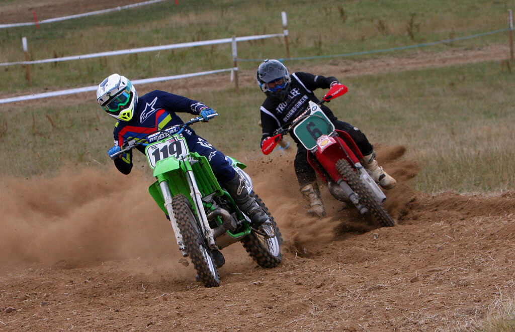The Over 40’s Evo Championship class on the Saturday saw Ben Masters on his Cr 250 Honda win the opening race by literally a whisker from Nick Lane with Kevin Edwards on the big Cr 500 Honda taking third. Going into the second moto Masters had a one-point advantage with both Edwards and Lane just two points behind tied on points so it was set for a nail-biting finish, and it proved good for Masters who took the win which gave him the overall and taking second overall was Edwards who finished second in the last race with Lane finishing third to give him third overall.