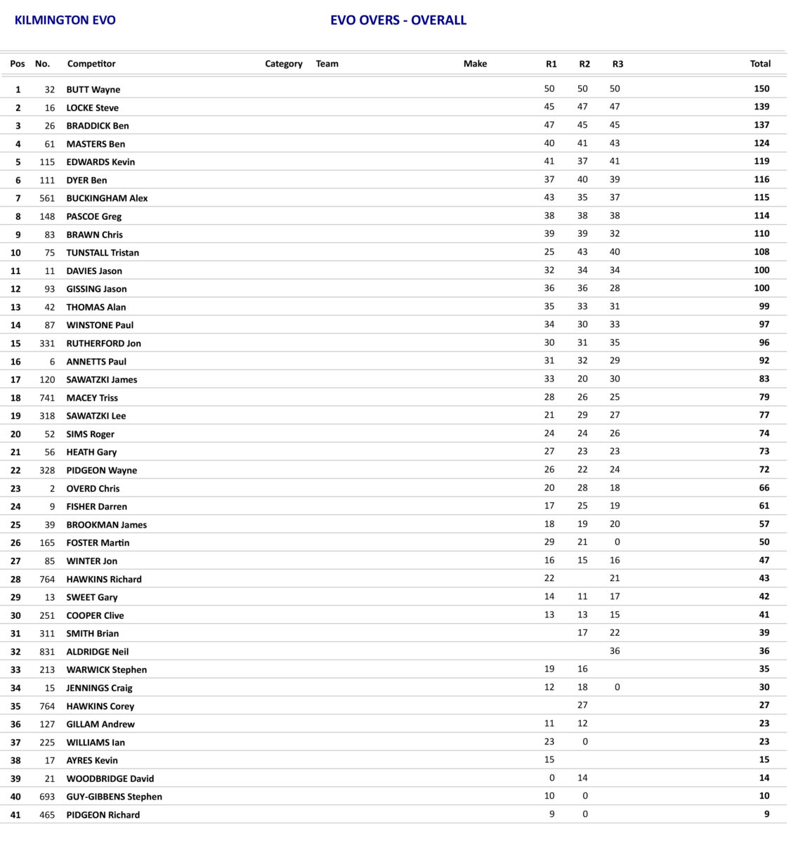 The Over 40’s Evo class saw Ben Braddick on his CR 250 Honda head the proceeding for a couple of laps in the opening race, but right in his wheel marks was another CR 250 with Wayne Butt on board who got the better of Braddick mid-race and was to go on to take race one with Braddick holding off Steve Locke in the closing stages and took 2nd by literally a second. In the second moto, it was a better start for Butt in this one and he was soon into his rhythm and was to take a comfortable win from Locke who took second ahead of Braddick who again had a good ride. The last race saw Butt out on a CR 125 for this one and showed the 250’s how to go as he went on to take the Chequered flag for a hattrick of wins with Locke 2nd and Braddick taking 3rd which was how the overall was at the end of the day.