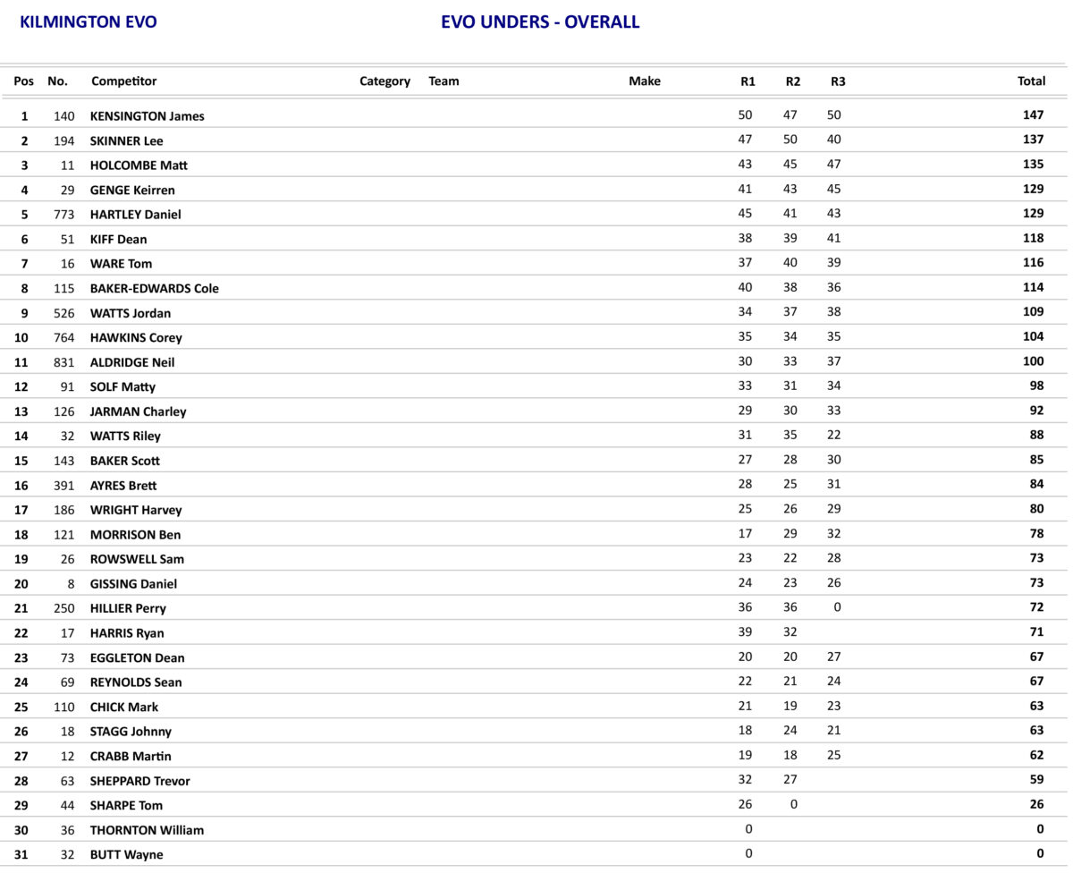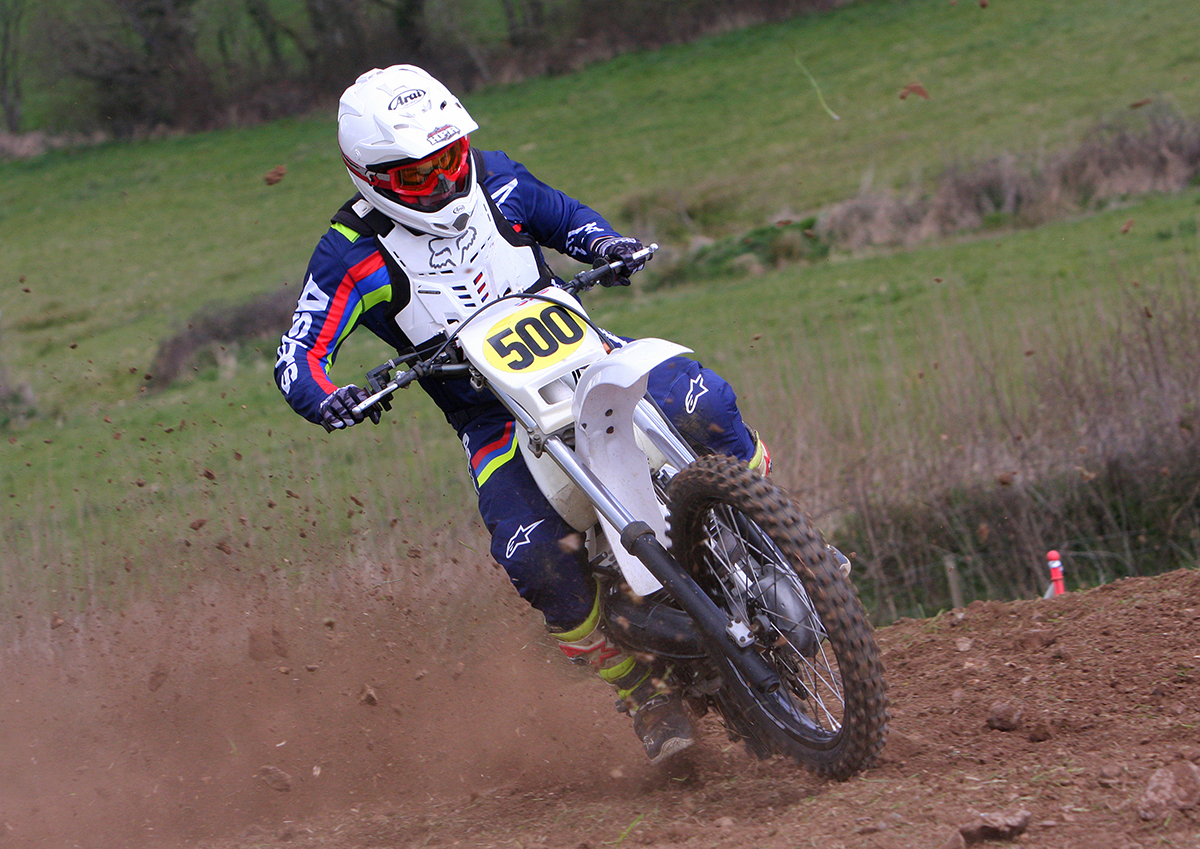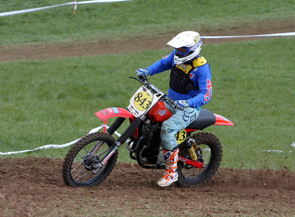 In the Under 40’s Evo class there was a good tussle in the first two races between the YZ 250 Yamaha of James Kensington and Lee Skinner on his 250 CR Honda with both taking a win each, so it was all down to the last race to decide who was going to take the overall, but the race didn’t start well for Skinner as he was late to the line and was right at the back of the field. Kensington didn’t take long to hit the front and with a clear track, he was to go on untroubled to take the win to give him the overall with Matt Holcombe finishing second which with three consistent rides was to give him third overall just behind Skinner who managed to claw his way up through the field and finish in 6th in the last race to give him second overall on the day.