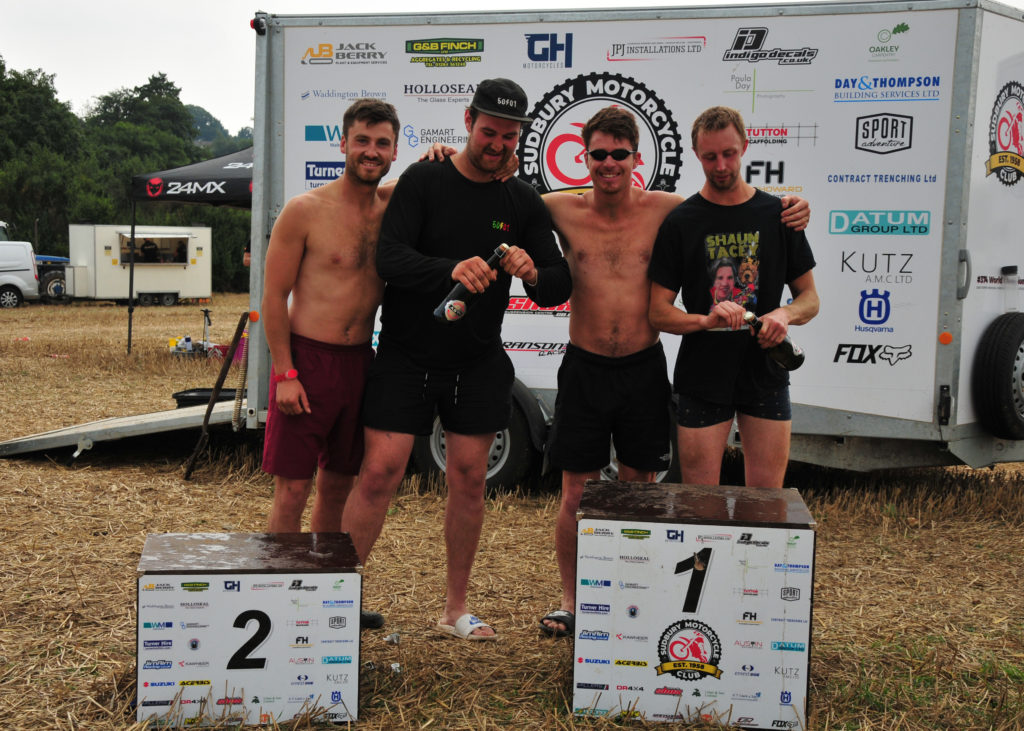 Technical questions in the form of narrow concrete and wooden pallet bridges with a temporary wooden road put in on one stage to save an even bigger bog constantly had the riders on the brakes and up on their pegs for a tiring 4 hour race. The dark clouds which threatened all afternoon held off till an entertaining presentation ceremony took place signalling an end to the 2021 Dave Barkshire 2 man Eastern Centre Championship.