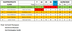 In the Inappropriate class Scott Thompson and Aaron Brannon traded wins but it was Thompson who came good in the end for the overall, while Anne Marie Kenyeres duked it out with Wag Scott for the ladies win.