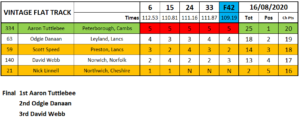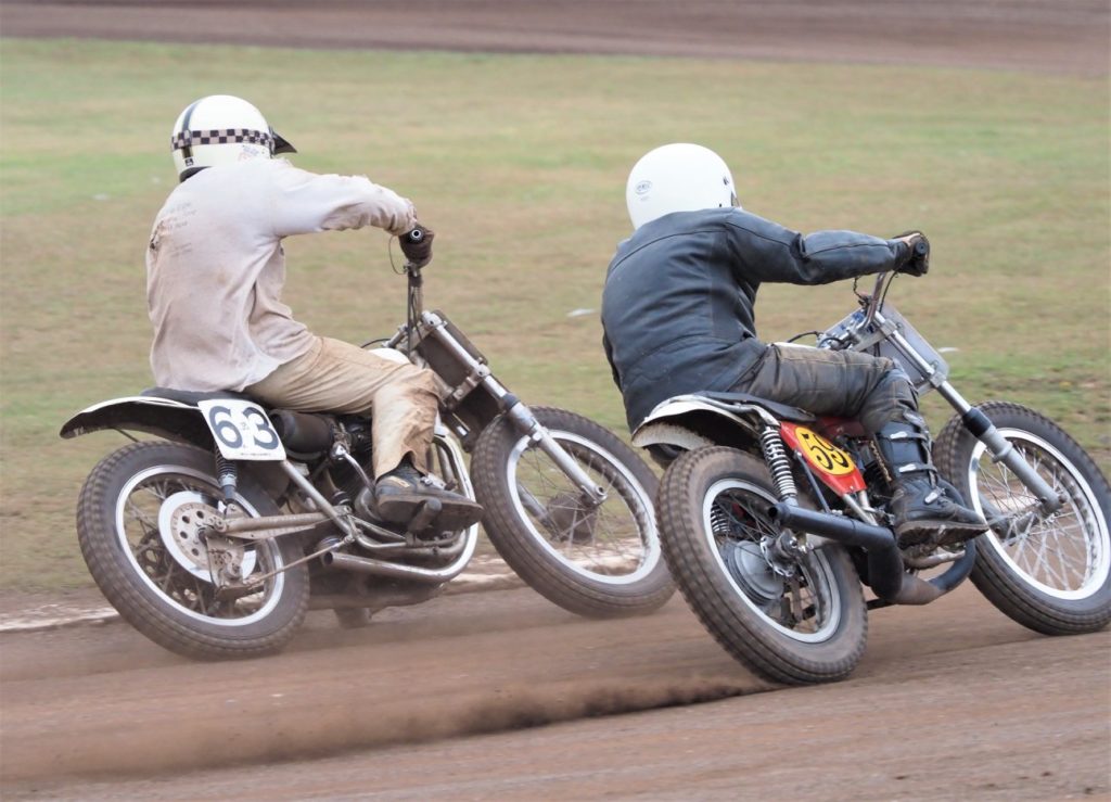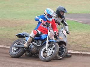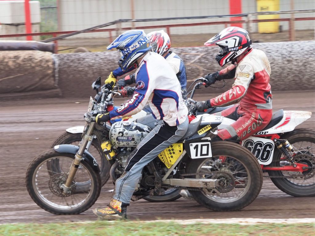 Jack Bell continued his fantastic form in the Flat Track class being defeated only the once by Tim Greig who finished second with Trevor Heath third.
