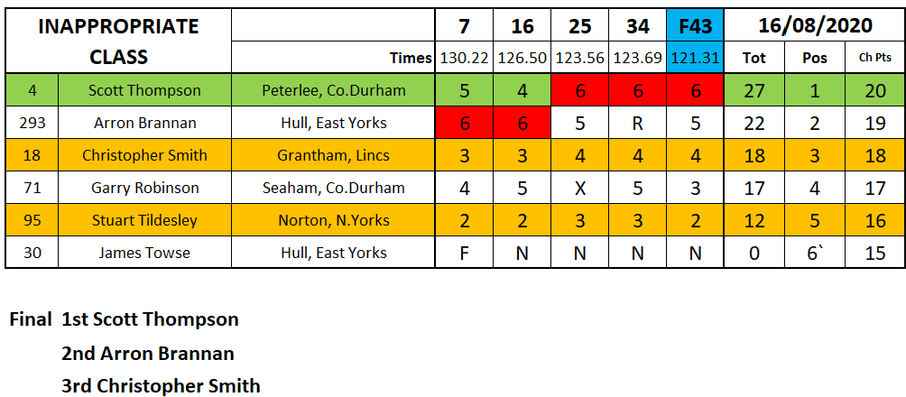 In the Inappropriate class Scott Thompson and Aaron Brannon traded wins but it was Thompson who came good in the end for the overall, while Anne Marie Kenyeres duked it out with Wag Scott for the ladies win.