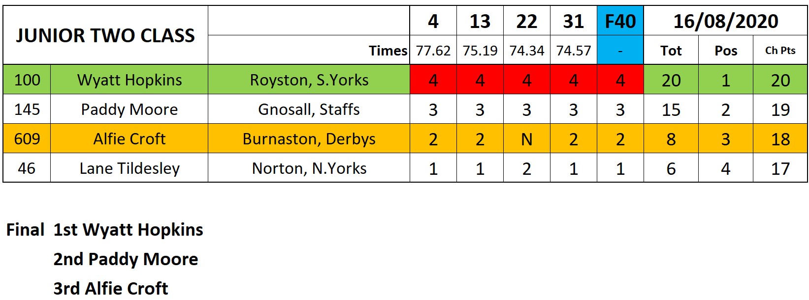 In the Junior One class Jack Franklin went through the card for the number spot, and in Junior Two Wyatt Hopkins rode superb winning each and every race.