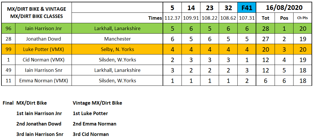 Iain Harrison Junior powered his MX bike to victory in that class while Luke Potter made it a great day and added the Vintage MX victory to his Street Tracker win.