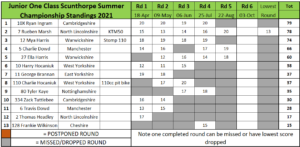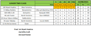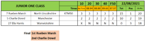 Rueben Marsh was the top dog in Junior one beating second places Charlie Dowd in each race, while in Junior two Wyatt Hopkins had a great day taking the number one spot ahead of Alfie Croft and Josh Fowler.