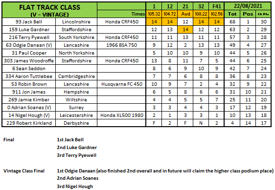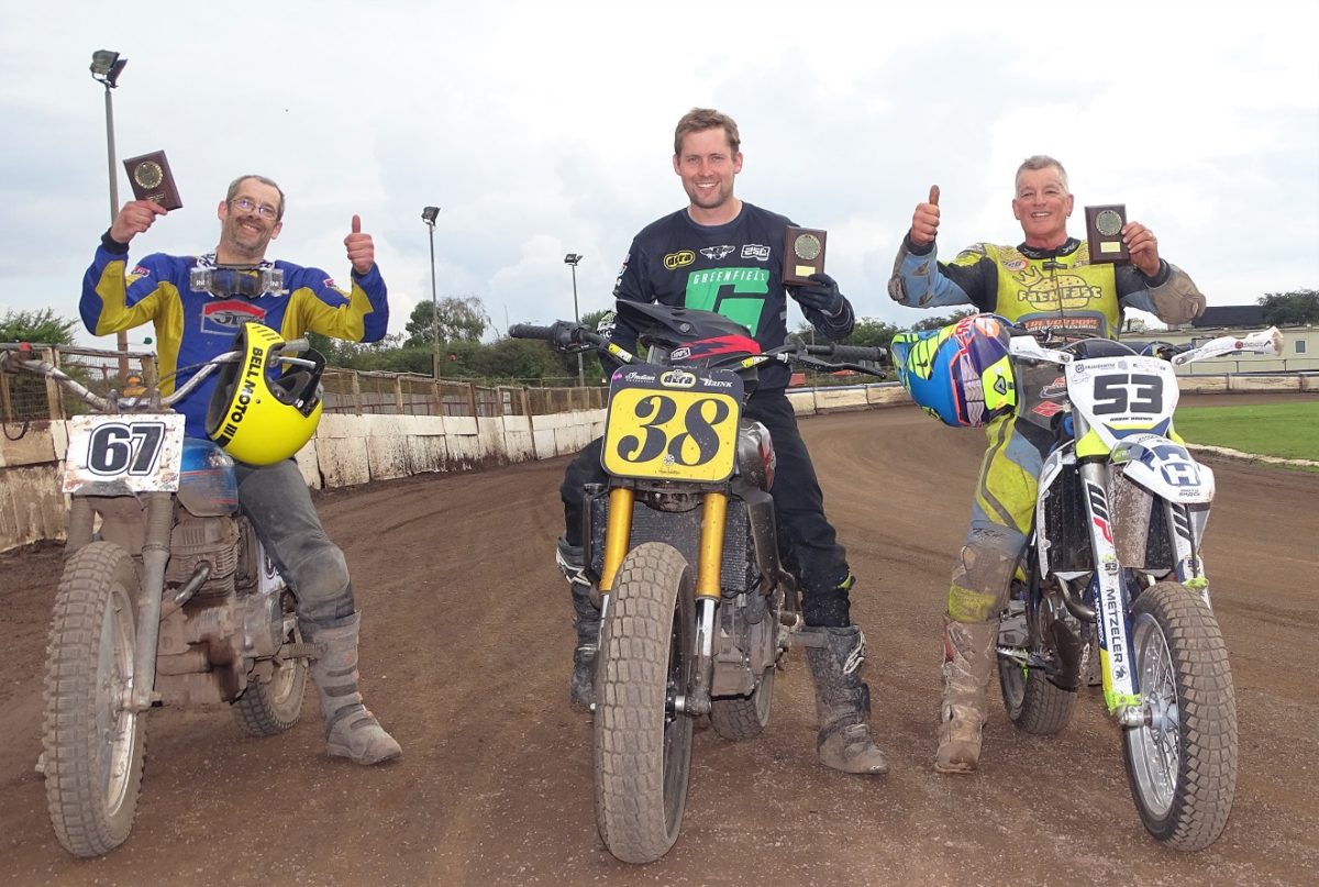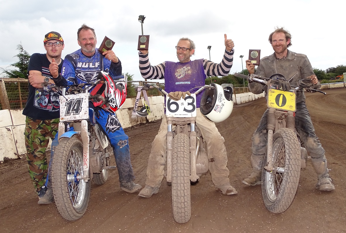 Over in the Vintage Flat Trackers Odgie Danaan triumphed with Adrian Soanes in second and Nigel Hough third.