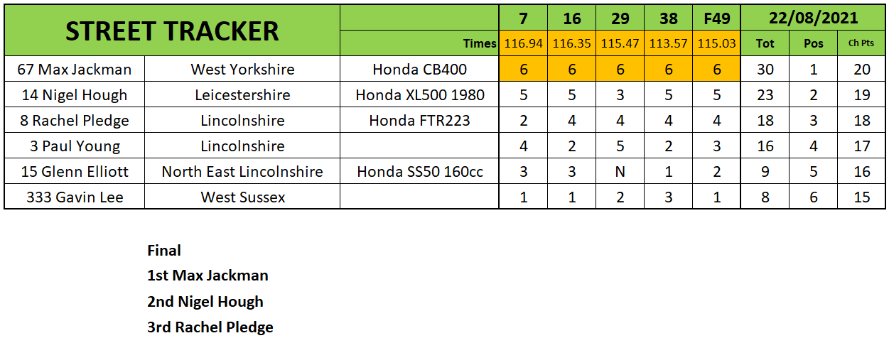 In the Street Tracker group Max Jackman was victorious and was flanked on the box by Nigel Hough and Rachel Pledge, while in the Super Comps, George Pickering made his first 2021 appearance and took the win over Robin Brown and Max Jackman.