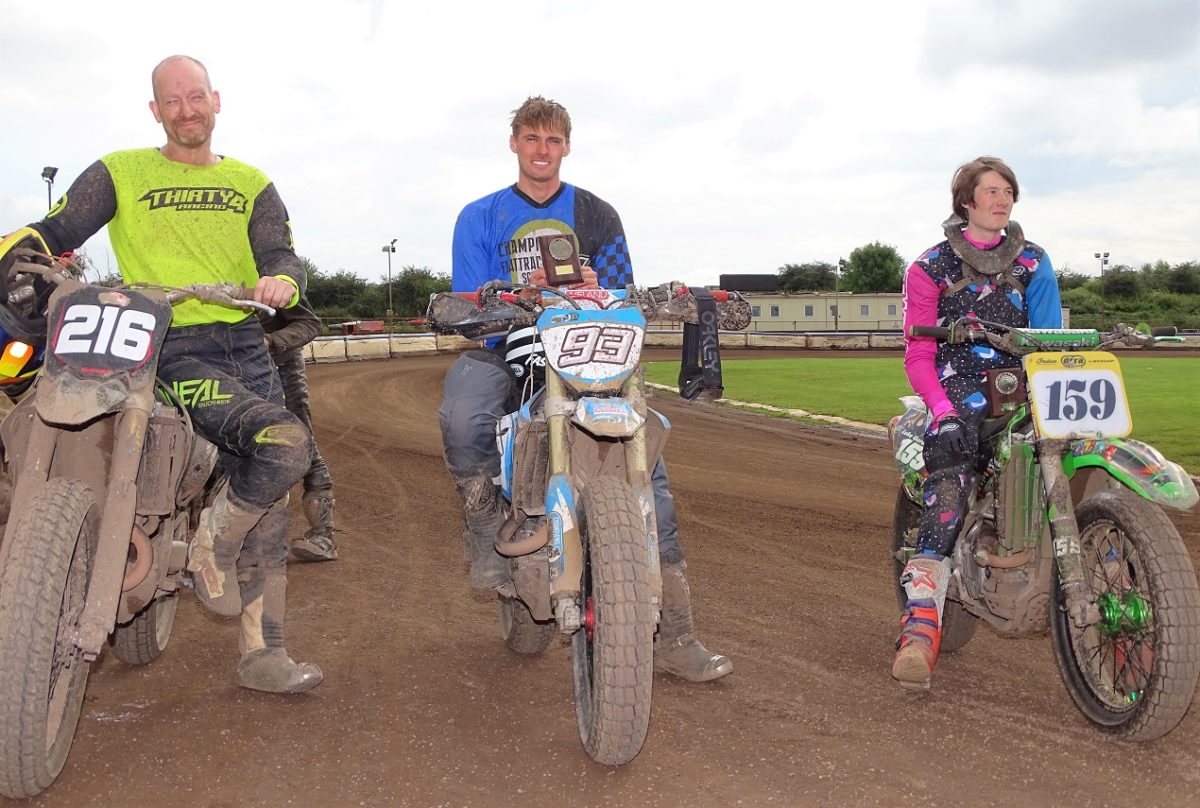 Luke Gardner stopped Jack Bell from going unbeaten in the Flat Track class but Bell still triumphed in the final from Gardner and Terry Pyewell.