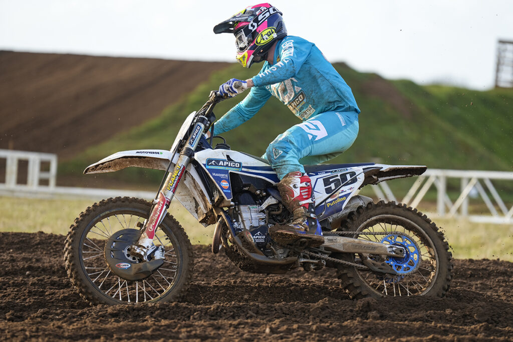 Apico Husqvarna fielded a team of 2 MX1 and MX2 riders, with Martin Barr as the new recruit joining Stuart Edmonds in MX1 and Jack Lindsay moving up to MX2 to accompany Jamie Law in MX2. Qualifying went well for Edmonds, Barr and Law posting top 10 fastest times, and it was all for Jack Lindsay to do in the race after finishing qualifying with 23rd fastest in MX2.