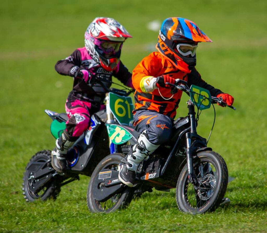 In the E-bike category, Jessica Cox continued her winning ways. The Runcorn racer dropped 1 point in her 5th ride when battling with FGA newcomer and son of multi-Masters champion Mark Cossar, Toby. Cox Clipped the back of Cossar and fell, Remounted and continued to finish 2nd to Lilly Bence. The Cox – Cossar duels were an entertaining feature of the day’s racing; both were evenly matched with Cossar finishing a close 2nd overall. Lilly Bence was consistent to finish 3rd and Connah Quays Alfie Salisbury finished 4th.