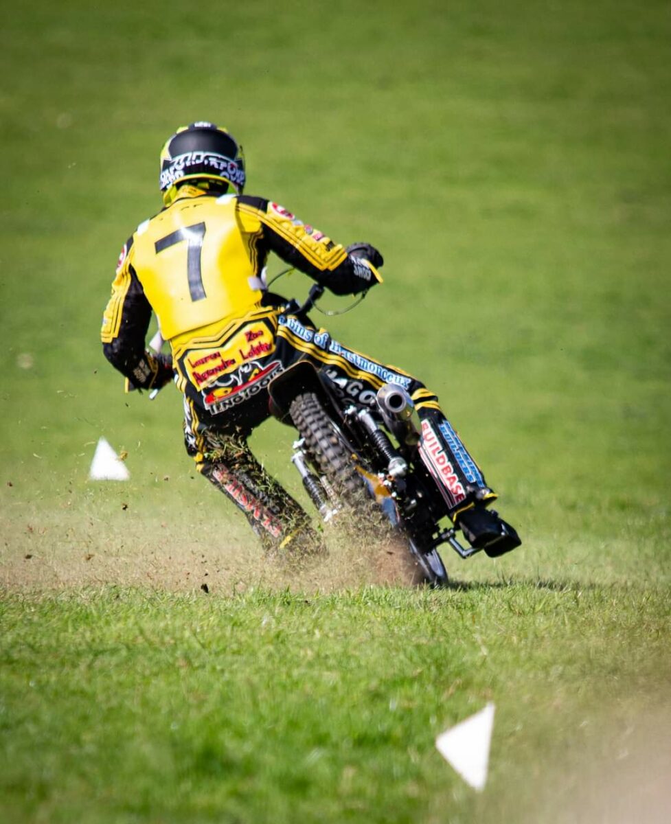 Once again, the Senior class produced some close racing, with riders often split by inches rather than yards. Kevin Gwillam and Wayne Broadhurst would continue their on-track battles. Meeting twice in the heats, they would take one victory apiece before going on to win all their remaining heats. The final would be the decider for them. Steve Mace would have one of his best meetings ever, taking 3 wins and 3 second places to join Broadhurst Senior and Gwillam as 3rd qualifier for the A final. Colin How was 1 point adrift of Mace and Minsterley’s Andy Rowson, a point behind How to finish 5th after some hard-charging through the field during the day. Chris Timms would enjoy his best FGA meeting too, Finishing 6th after a quintette of 2nd places. Gino Casale made his Senior debut. The 2021 Junior Champion was a dark horse throughout the day, taking two victories to finish 7th.