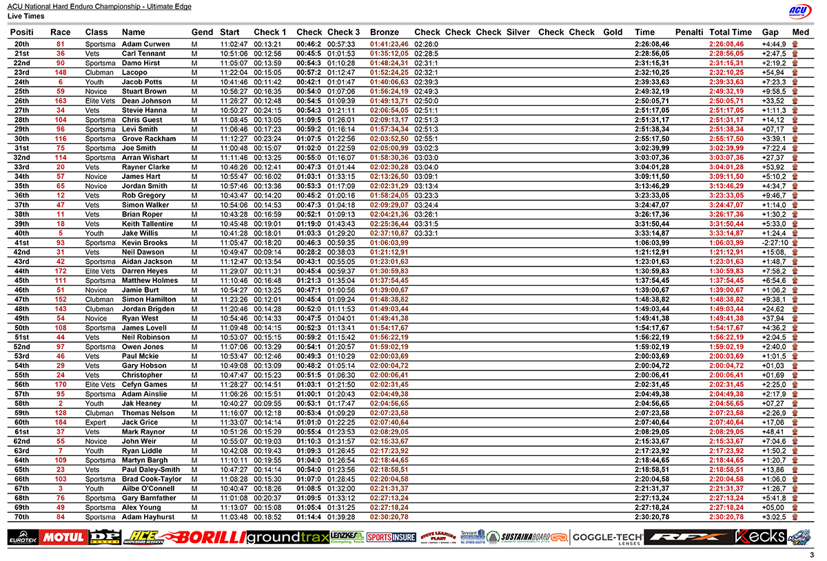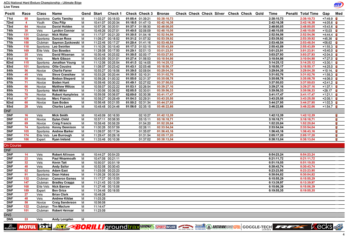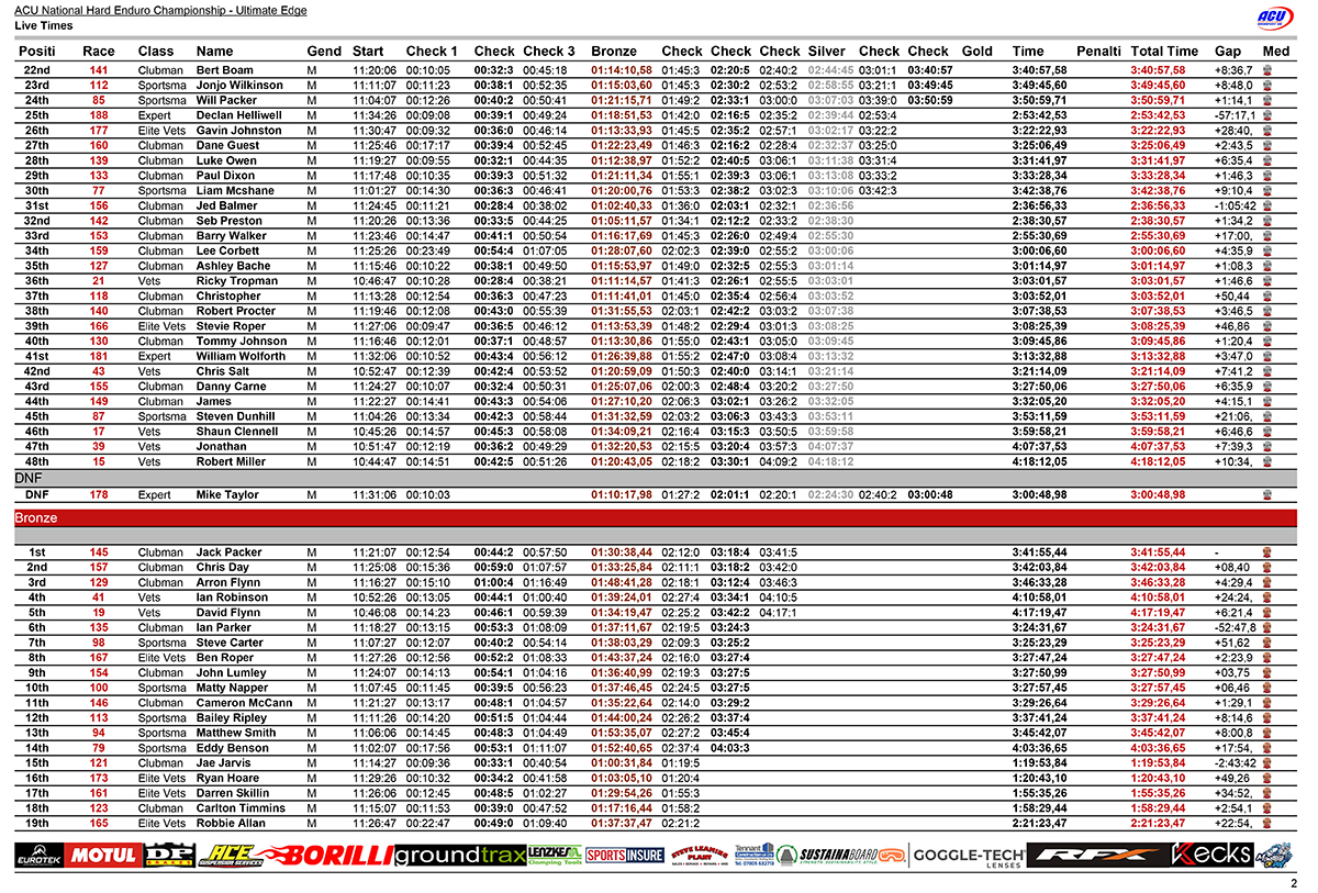 The top Expert of the day was Tom Minta who was right in the mix with the bigger names in the Championship class and was only one of 24 riders who made it to the Gold checkpoint, as did the top Elite Vets rider Mark Jackson and the winning Clubman rider Liam Robinson.