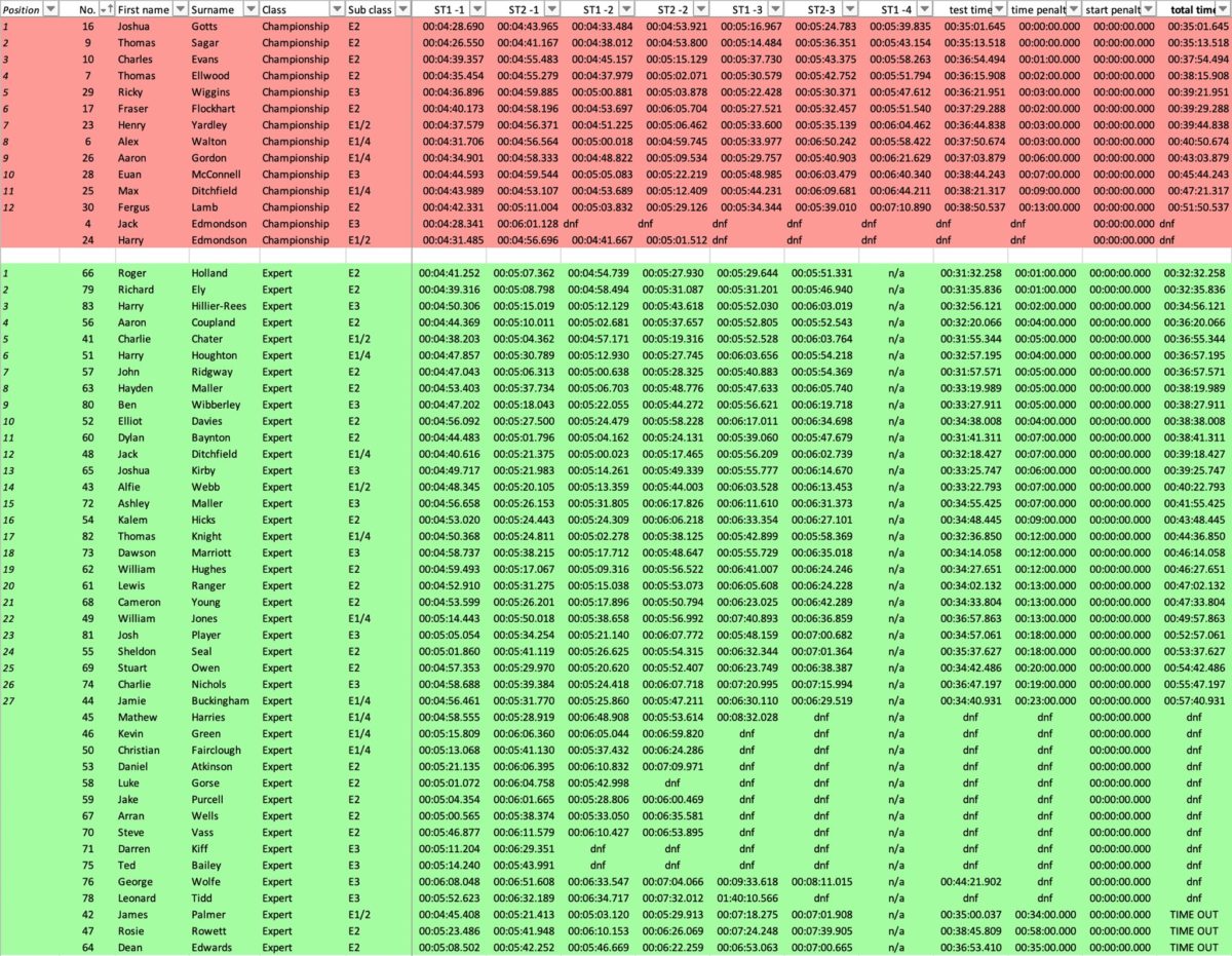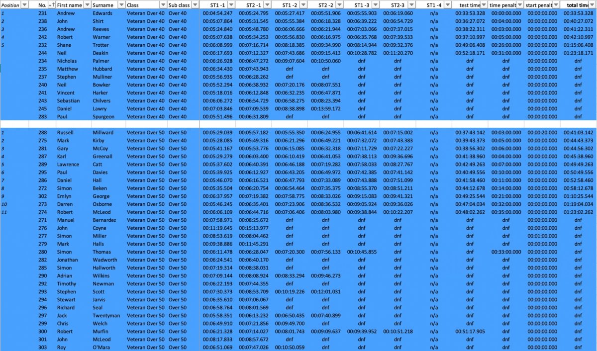 The over 50s was won by Russel Millward despite getting a 20 second penalty to start the day off, local man Mark Kirby was 2nd and Gary McCoy was 3rd.