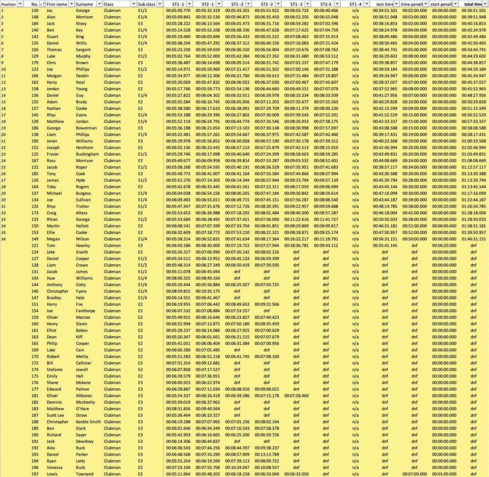 Again, in the clubman class everyone dropped time, Jac George was on a blistering pace all day from test times alone he had a 2-minute lead and with penalties added he finished up 3 minutes clear of Alan Morrison in 2nd. Jack Nixey finished 3rd and 1st E3.