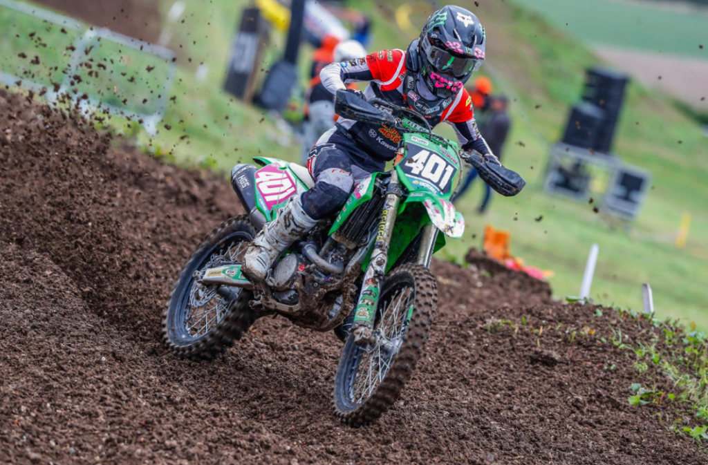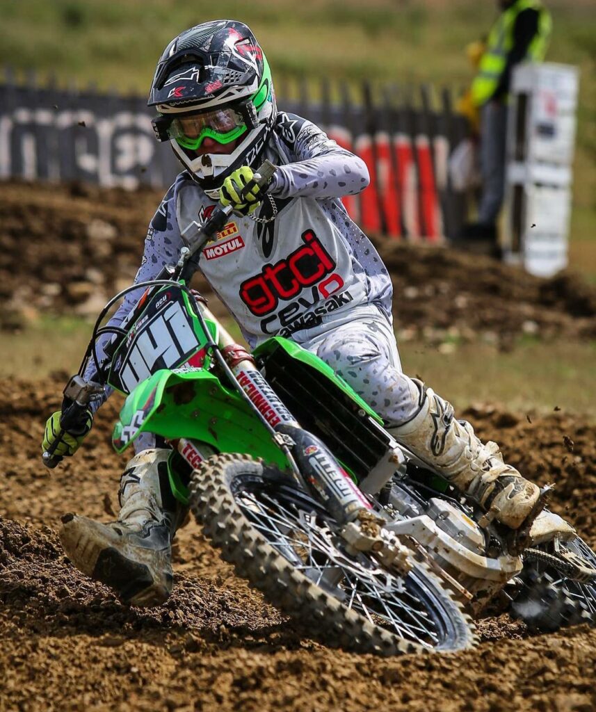 GTCI Revo Kawasaki’s Billy Askew made his EMX250 debut at his home round following a dominant season in the British 250cc Youth Championships. After a difficult first race which saw him finish 24th, he scored his first points with a consistent ride to 13th in race two, putting him in 17th overall.