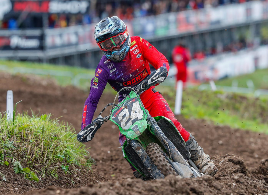 A fall on the second lap of race one put the Norwegian back to eleventh after his sixth-placed start. By lap seven he made a neat pass for tenth and by the finish had closed down the riders ahead but was unable to make a further pass on the ultra-fast raceway. In the final race of his MX2 career – the championship has an age-cap of twenty-three years of age – the F&H Kawasaki again railed the outside of turn one to race past pit-lane sixth before an unfortunate choice of lines during the ever-hectic opening lap saw him relegated to tenth. Digging deep he jumped to eighth on the ninth of fourteen laps and continued to push, nearly catching seventh. However his efforts were already sufficient to secure eighth on the day and seventh in the final championship standings.