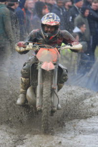 The first three at this point had a remarkable 17 previous W&W wins between them. Jack and Neville made it clear from the first lap that both were very determined to take the win this time out. Ryan kept bravely with them for about the first 4 laps before losing third to hard charging Joe Tobutt. Joe moved up from sixth on lap one and was the only rider to stay on the same lap as the two front runners. Whilst he could see them at various sections of the track and stay close to their lap times for the first half of the race, he was never able to close up the gap. Meanwhile at the front a close battle raged. Jack’s enduro style and experience gave him an advantage at the water crossings, while Nev’s motocross speed gave him the edge on the outfield and whoops. Staying closely locked together the lead changed back and forth seven times in the first fifteen laps.