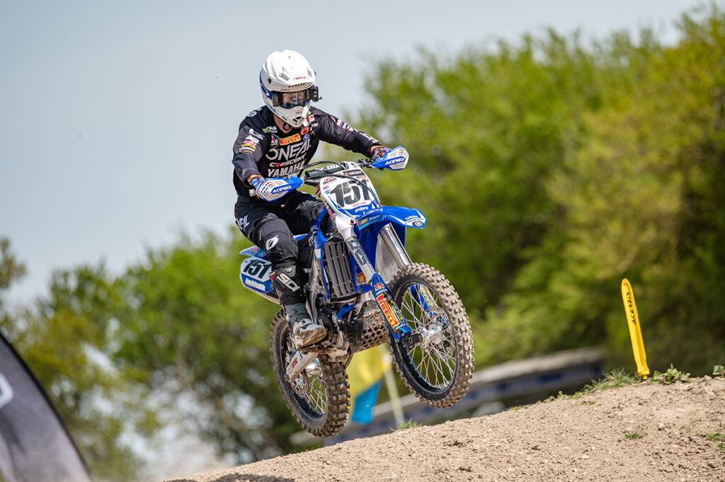In the 250cc class, Travis Steels grabbed the holeshot in race 1 and didn’t look back, the BDR Ansa Tech rider controlled the pace and held off the hard charging Tyler Westcott to take the win. Drama in race two changed the narrative as on the sighting lap Travis experienced bike problems delaying his return to the start leaving him with the last gate pick. Travis was buried in the pack after turn 1 and made too many mistakes to get back to the front. Tyler Westcott dominated the race with a very sizable lead by the time he crossed the finish line, the 2-1 scorecard gifted Tyler top step on the podium again. Team Green Kawasaki rider Jak Taylor put two very solid performances together to grab himself second overall for the day. Jak is starting to find some form so keep an eye out for him for the remainder of the season. A wildcard in the class for the weekend, Ollie Colmer, took home 3rd overall on his GRT Impact KTM 125cc machine.