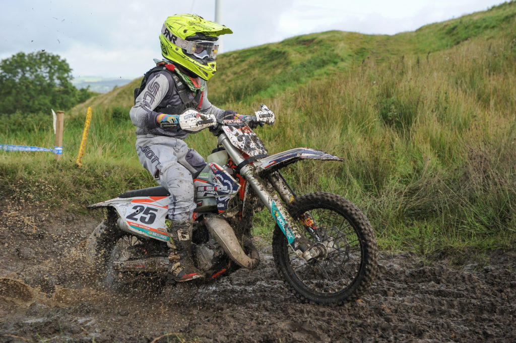 With track marshals having changed to course to include the woodland and long hillside fell run, at just after 11am Wayne Braybrook fired the adult event into life. Each and every class had some awesome battles at the front, as mid pack riders battled to make the finish. Old school Enduro’s are few and far between these days, Hapton always makes riders work for their supper, and this day was no different. Jamie Williams drove from Wales to Lancashire to make sure he didn’t miss the latest Rock Oil Championship, his steady start then saw him settle into a rhythm which meant he was able to take the overall win. Chris Hughes hopped back on his enduro bike to race Hapton, Pingu was on great form even making light work of the tough climb out of the woodland which was always a test. Championship leader Jack Spencer crashed out on Lap one damaging rider and bike past the point of being able to continue.
