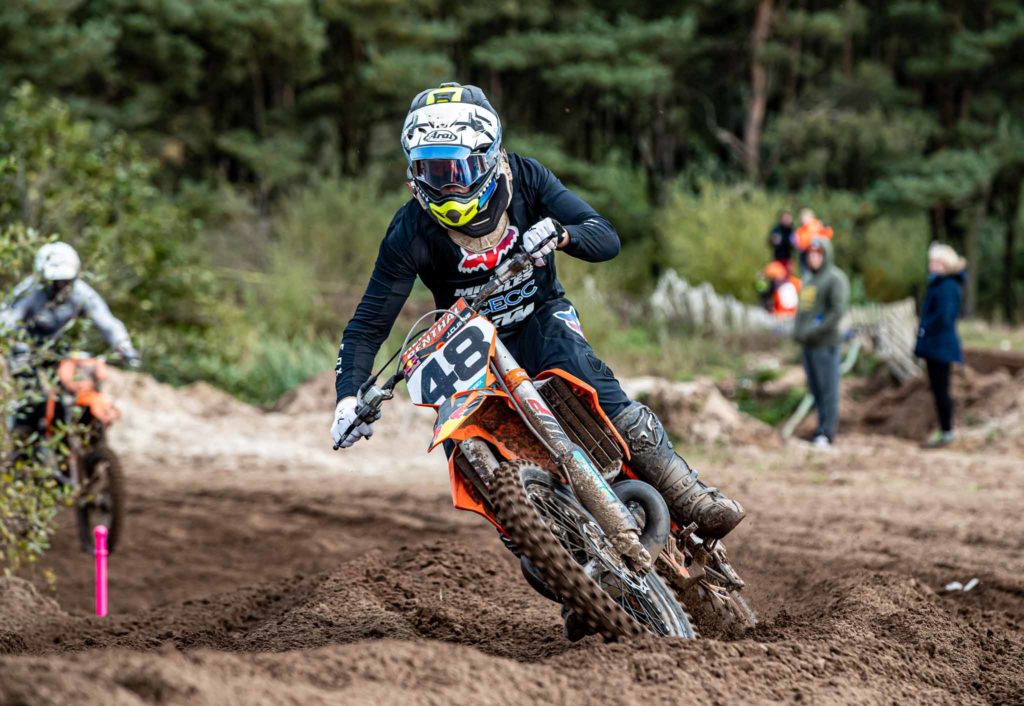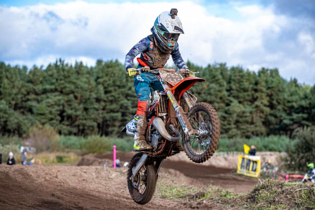 Dylan Grieve came into Sunday with high expectations of rounding out the season with three race wins. The scene was set but after winning the first race, Dylan injured his shoulder in race 2 ending his day there. He didn’t have it all his own way in race one as two very quick lads joined the final race of the season and got out the gate to threaten Dylan’s dominance. Dylan had done enough to be ScotMX champion though. Jamie Clarke would grab the hole shots and three podiums for the overall but not without a hard fought win against Henry Kerr. Henry, a Mountain Bike rider rode an old 2007 125 KTM two stroke but his talent came shining through. The pair would finish on equal points, but Jamie grabbed the overall with his final race win. Relatively new to riding, it was a fantastic win for the Irishman and well worth the trip. Henry was desperately unlucky not to get the overall as he rode from dead last in the final race after trouble at the first corner and it proved difficult to pass Myles Nelson and David Dickson as they were in a race long battle themselves. Kerr eventually got Nelson, but Dickson stayed ahead of Kerr to secure a final race second and the overall third. Nelson would fall back a few places, and this allowed Douglas Campbell the fourth overall. Myles Nelson Scott Mair rounded out the top 6 after a solid ride.