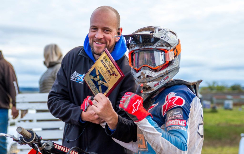 The ScotMX Championship triumphed over adversity and delivered some great race meetings. With a re-energised SACU, Stuart Flockhart has worked hard to bring back a Motocross series and with it, a trophy that goes back to 1955. That in itself is no mean feat and he has been able to do this with the backing of some serious support. Along with Carnegie Fuels and Safe Access Highland who sponsored the MX1 and MX2 races, Stirling Power Sports had the inventive Blu-Cru Cup which recognised Yamaha riders in their respective classes. Milwaukee Tools gave support to every class racing by providing vouchers which could be claimed in conjunction with PowerToolMate.co.uk. This made for some very competitive racing as each rider did their best to bag some tools! AMD Contract Services LTD provided cash prizes for Hole-Shots which again, made sure everyone was involved in the dash for cash. Dyce Carriers and recent sponsor addition MRDS have supported ScotMX to make sure the best possible event could happen. Westerton Access contributed to making sure the medical cover was supplied for the meetings and assure the riders they would be in safe hands.