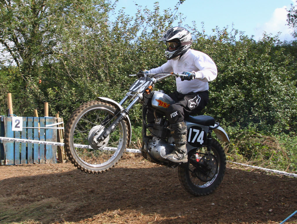 Adam Butt turning on the power on his 350 BSA and took the overall in the Pre 74 over 250 class