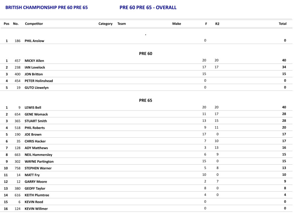 The Pre 60/65 combined British Championship class saw some good battles which saw Micky Allen on his 600 BSA Goldstar win both races from Ian Lovelock on his 650 Tribsa whereas in the Pre 65 class there was a good start in the opening race for Matt Fry on his 600 Jawa Cheney but by the end of the opening lap it was defending Pre 65 Champion Lewis Bell on his 560 Jawa who was to take over the lead and was to show his intentions on retaining the title as he was to win the second race as well.