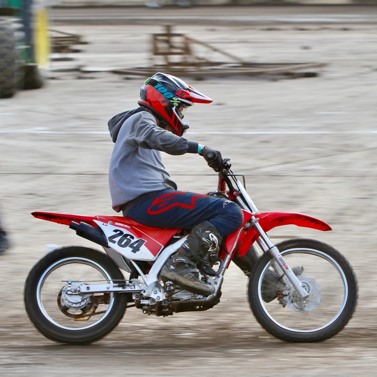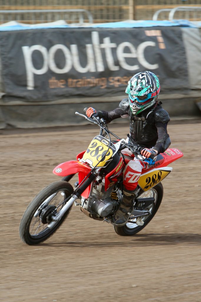There was some great racing in the Stock Minibike class, you would’ve struggled to predict the winner, but after crashing in one of his heats, #246 Freddie Hales bounced back strong to get the top spot. There was only 0.4 seconds between 2nd and 4th places, #831 Jamie Robertson managed to scrape 2nd place and #76 Skye Adams got 3rd. That class is always a crowd pleaser.