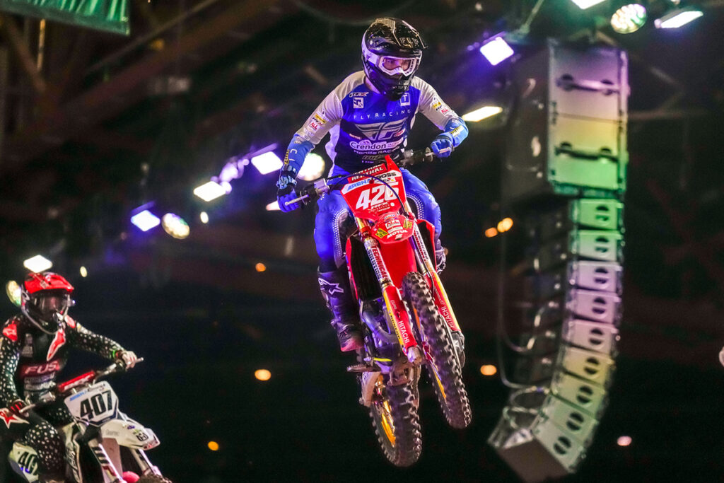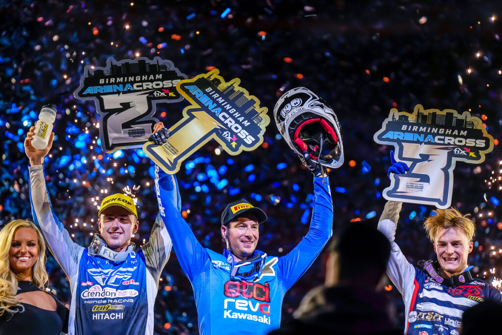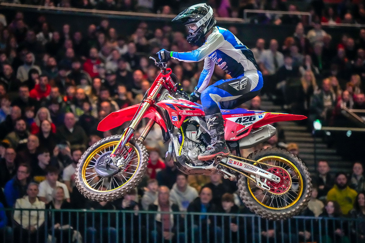 British MX2 champion Conrad Mewse salvaged a second-place finish after a terrible start in the main event of the penultimate round of the new-look UK Arenacross championship at the sold-out Genting Arena in Birmingham. The Crendon Fastrack Honda rider now trails the series leader Tommy Searle by just two points as the team heads to the final at Wembley in two weeks.