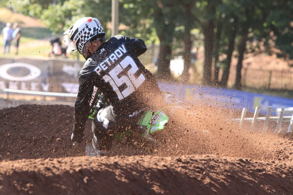 In the Pro ranks Petar Petrov started strongly in the morning timed sessions with a fifth aboard his KX450, whilst teammate Carlton Husband qualified in seventh. As the midday sun shone down on the start gate the riders headed to the line. Petrov, who has been plagued by poor starts all year rounded the first turn outside the top 15 and had it all to do, but he quickly found his groove and charged back up to finish sixth. In race two Petar was just outside the top 10 at the end of the first lap, from there is clicked off consistently fast laps to pass back up into the top three where he would finish. A solid weekend where the Bulgarian was able to show his raw speed culminated with his first Michelin MX Nationals podium.
