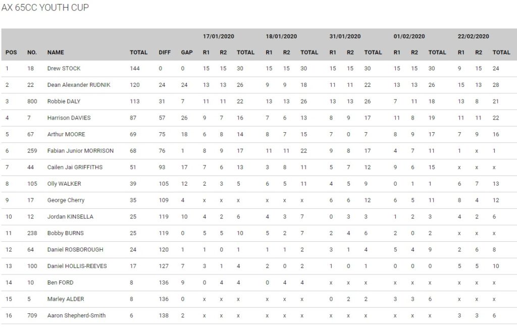 6 17 Mathew BAYLISS 12 26.187 13.723 3.496 25.256