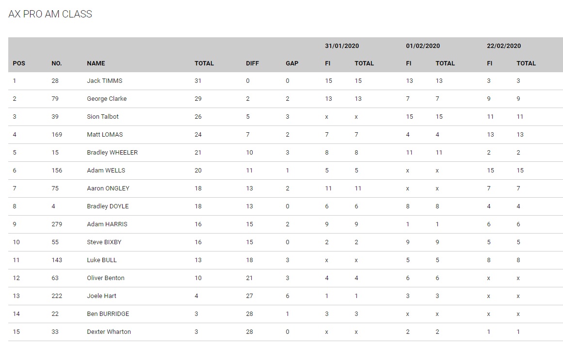 Adam Wells would go on to win the Pro-Am final from Matt Lomas and Sion Talbot but the title would go the way of Jack Timms, just two points ahead of George Clarke with Talbot third.