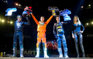 Former triple AX winner Thomas Ramette was back on top in the second Pro 450 Main Event with Aussie SX Legend Dan Reardon looking strong in second aboard his Fro Systems Yamaha.