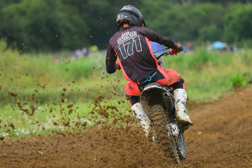 It was due to rain at round 4 of the Portsmouth MXC summer series at West Meon. The forecast looked awful but the meeting was still going ahead and all of the regular Portsmouth members were out in force. The conditions ended up being perfect and made for some great racing for all the riders and spectators.