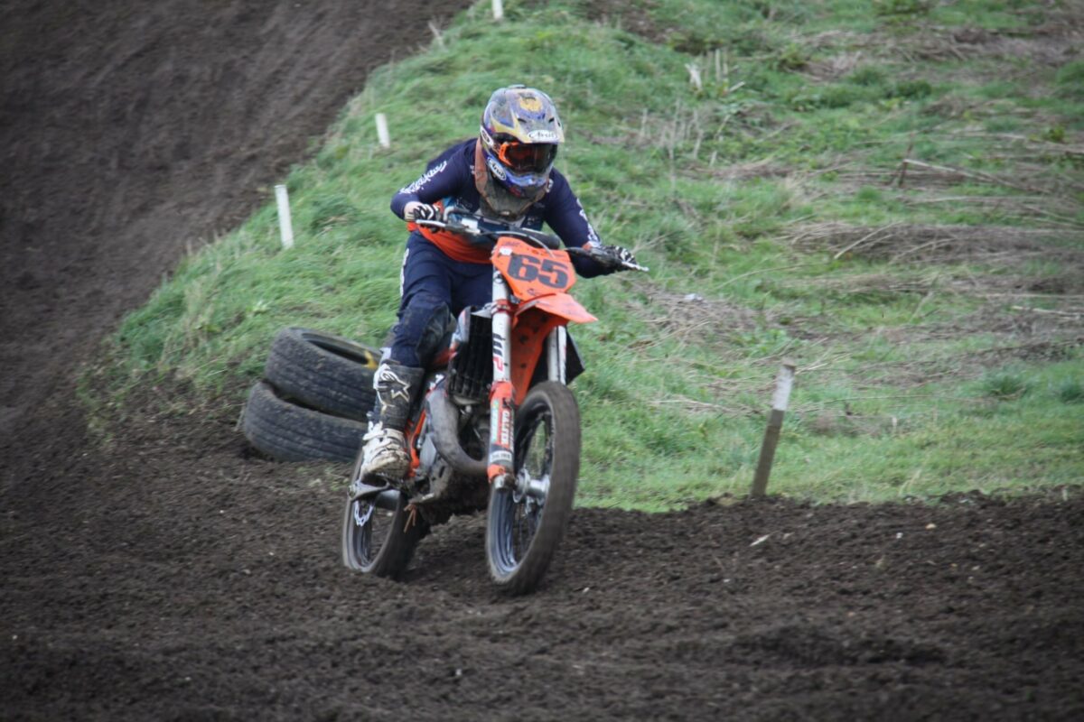 Dominic Newbury came out hot in the mx2. He managed to ace the conditions and went 1,2,1 for first place on the day. Tom Hughes followed just behind him. He looked like going for 3rd all day but managed to claw a 2nd place in moto 3. So with 3,3,2 he bagged second. The podium was finished off with Tom Chesterman with 2,6,3 being more than enough for 3rd.